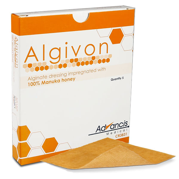 Algivon é um penso esterilizado de alginato, não aderente, impregnado com mel medicinal de Manuka Activon, com propriedades anti-bacterianas. O mel proveniente desta planta tem demonstrado possuir propriedades antibacterianas únicas, não encontradas em nenhum outro mel proveniente de outras fontes florais. O Algivon® é um penso antibacteriano de largo espectro, e eficaz contra a maioria das bactérias invasoras das feridas, como por exemplo Staphylococcus aureus e pseudomonas aeruginosa. Algivon® é eficaz contra um elevado número de bactérias, mantém o ambiente húmido necessário à cicatrização da ferida, absorve o exsudado e desbrida a ferida. Algivon® permite ainda a redução e eliminação do mau odor próprio de algumas feridas.