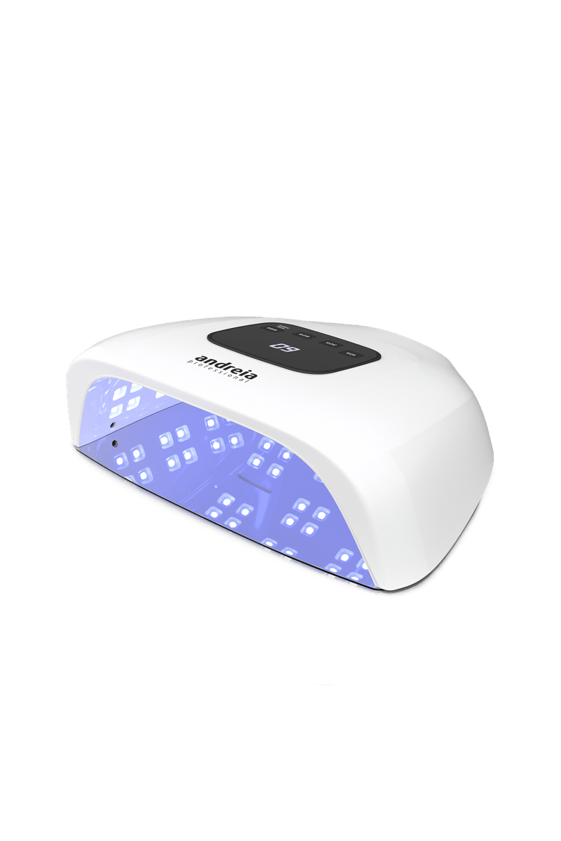 Lâmpada LED de uso profissional que catalisa adequadamente produtos de unhas LED e UV. A sua base removível, possibilita a realização de manicures e pedicures. Ao colocar a mão/pé no interior, o sensor de movimento fará com que a lâmpada se ligue automaticamente. O temporizador digital (10, 30 ou 60 segundos) permite controlar cuidadosamente o tempo de catalisação, e o modo Low Heat (baixo calor) garante um processo de catalisação progressivo, mais adequado para clientes sensíveis.