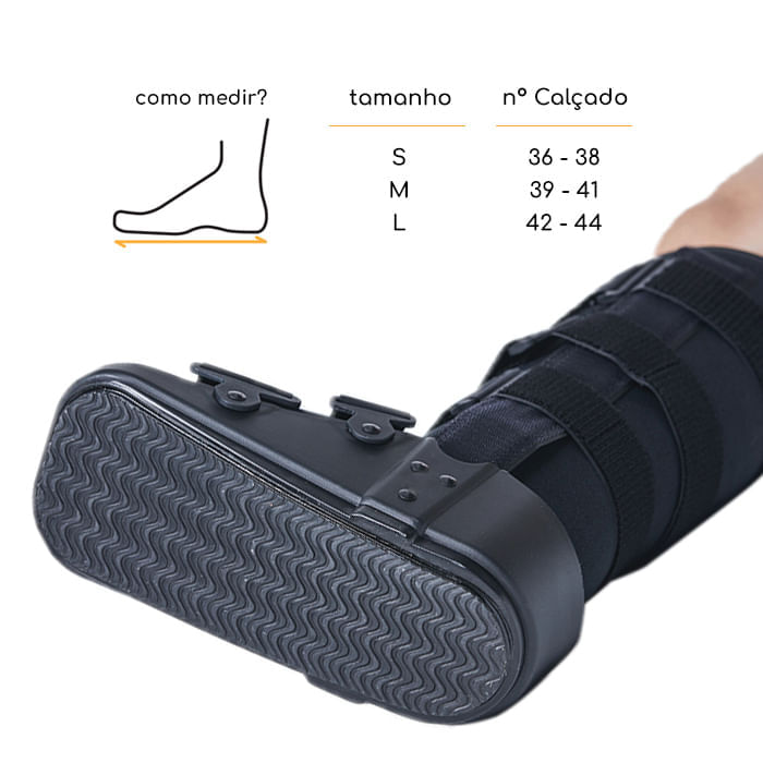 A Bota Walker Longa Alma permite a imobilização e estabilização da parte inferior da perna, do tornozelo e do pé. Marca: Alma Ortocare