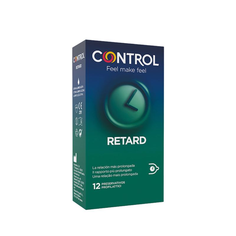 Control Retard é um preservativo lubrificado no interior com uma substância especial com efeito retardador, a benzocaína, para favorecer relações mais duradouras e prolongar o prazer. Contém 12 preservativos.