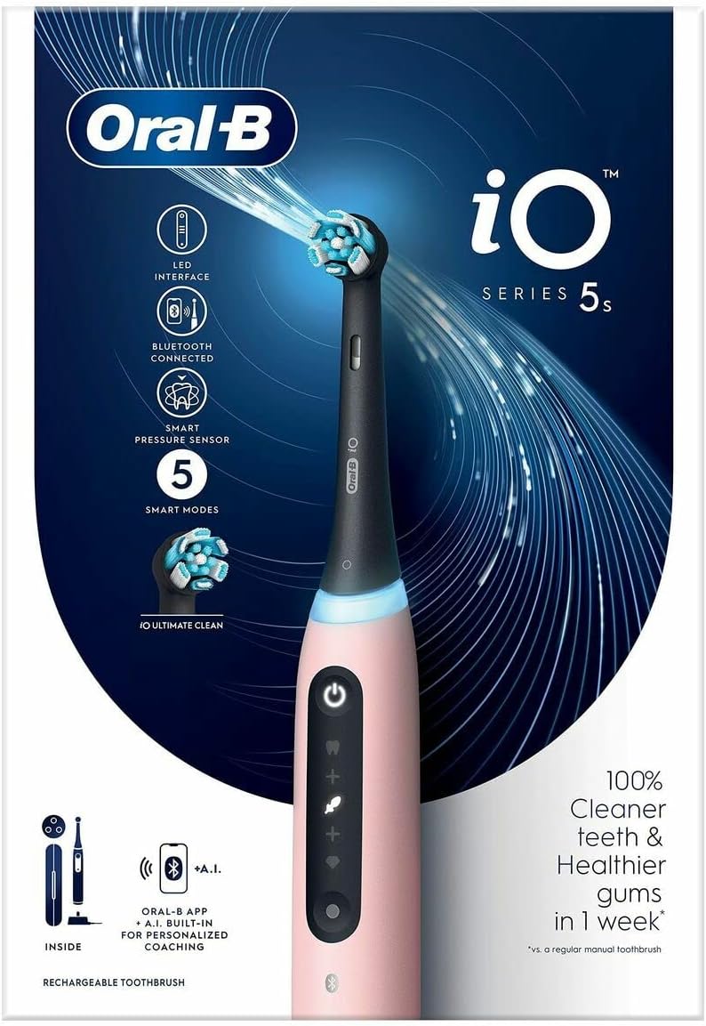 A escova de dentes elétrica iO 5 inclui a melhor tecnologia da Oral-B, combinando uma cabeça de escova redonda inspirada pelos dentistas com cerdas microvibrantes para uma sensação de limpeza purificante profissional em casa. O Sensor de Pressão Inteligente ajuda a evitar que escove com demasiada força ou demasiada suavidade para proteger melhor as gengivas. O reconhecimento do tipo de escovagem com Inteligência Artificial reconhece a sua escovagem e orienta-o para uma melhor escovagem todos os dias. Liga-se à App Oral-B gratuita para seguimento e orientação da escova em tempo real em seis zonas de escovagem.