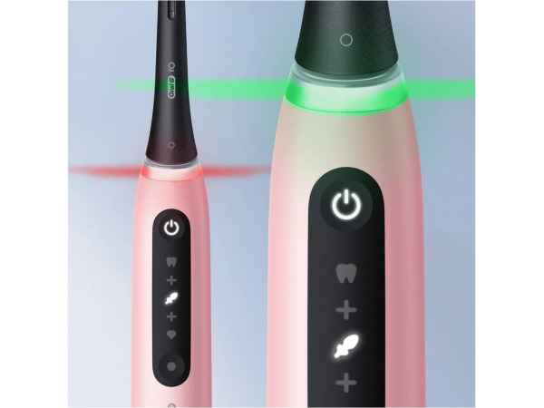 - O sensor de pressão inteligente indica vermelho, branco ou verde para alertar se está a escovar com demasiada força, força insuficiente ou com a quantidade de pressão certa;