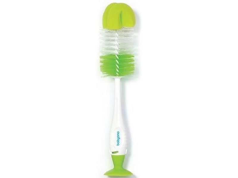 A escova de sucção será útil na limpeza completa da garrafa e da tetina. A escova está equipada com uma ventosa que permite fixá-la em qualquer superfície plana para facilitar sua secagem. A escova para o biberão possui uma ponta de esponja macia que se adapta ao formato do biberão. O manípulo da escova tem uma pequena escova para a limpeza das tetinas. As cerdas macias das escovas e a ponta da esponja alcançam os lugares pouco acessíveis. As escovas são feitas de materiais duráveis ​​e seguros, livres de BPA.