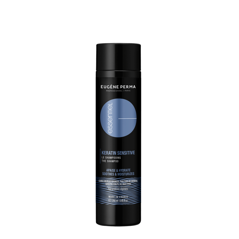 Champô calmante para couro cabeludo sensível, adequado para todos os tipos de cabelo. O Champô ESSENTIEL Keratin Sensitive acalma e hidrata o couro cabeludo. Limpa suavemente, deixando o cabelo reparado, macio e brilhante. Este champô contém proteínas vegetais extraídas da batata, reconhecidas pelas suas propriedades higroscópicas.
