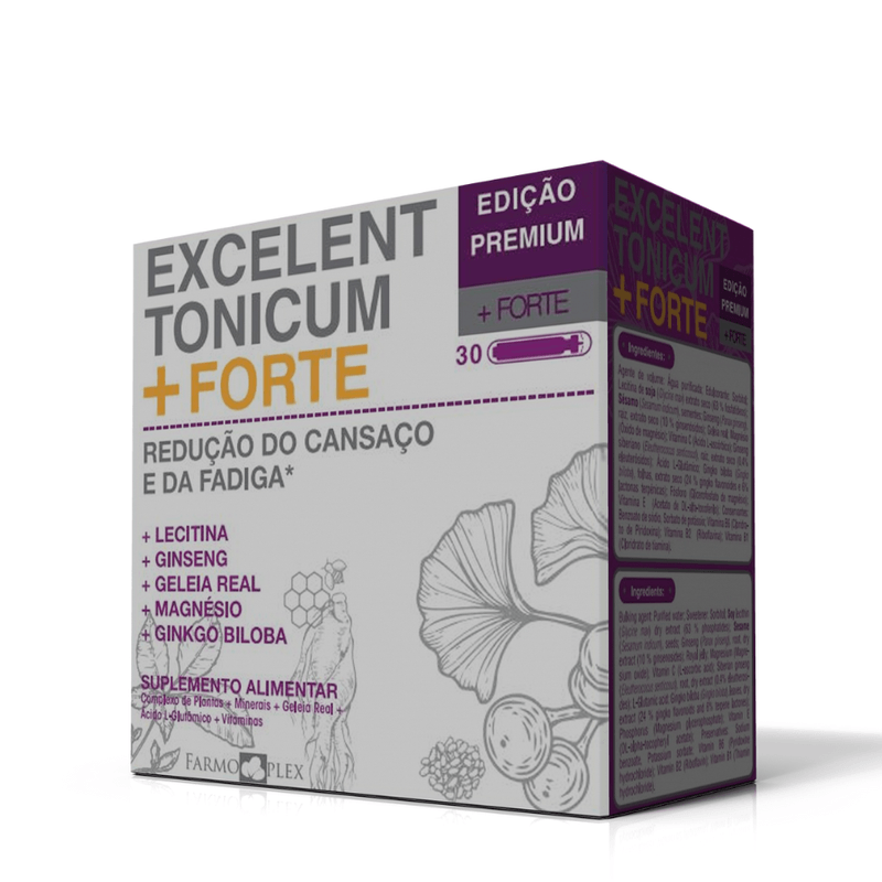 O Excelent Tonicum +Forte Ampolas combina um complexo de plantas como o Ginseng e o Ginkgo Biloba, que estimulam a atividade intelectual, com a Geleia Real, o Magnésio e as vitaminas do complexo B. Estes ingredientes atuam em sinergia para melhorar o rendimento cerebral, a memória e a concentração, ao mesmo tempo que reduzem o cansaço e a fadiga física e psíquica.