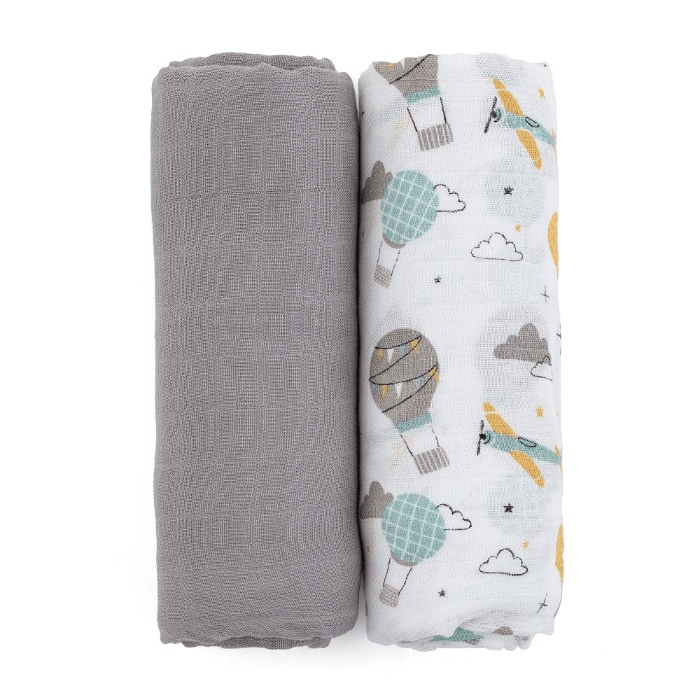 Fraldas de musselina de bambu Petite&Mars MISTY Grey Planes