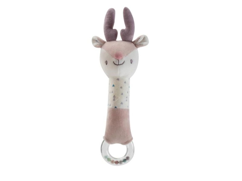 Um brinquedo que chia com mordedor, o veado Suzi acompanhará o seu bebé desde o nascimento. O tamanho do brinquedo é ideal para as mãos das crianças pequenas. O som do brinquedo atrai a atenção da criança e desenvolve as suas capacidades visuais e motoras. - o brinquedo faz chiar quando pressionado - mordedor translúcido na extremidade - bolas coloridas que chocalham - o som do brinquedo desenvolve as propriedades visuais e motoras da criança - ideal como presente para um bebé Dimensões do produto: 25 x 8 x 7,5 cm Encontrará também outros amigos de peluche na oferta Petite & Mars.