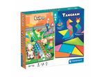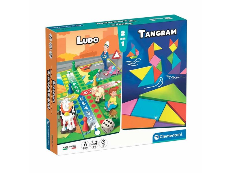 Esta combinação de dois jogos vai-te trazer o dobro da diversão e horas de entreternimento em festas ou em encontros com os amigos. No jogo do tangram, vais encontrar muitas peças de diferentes tamanhos e formas que vão ser colocadas juntas para formar padrões. Isto vai permitir que as crianças desenvolvam habilidades de observação e criatividade. Já no jogo do Ludo, o primeiro que levar as suas fichas até ao fim do caminho é o vencedor.