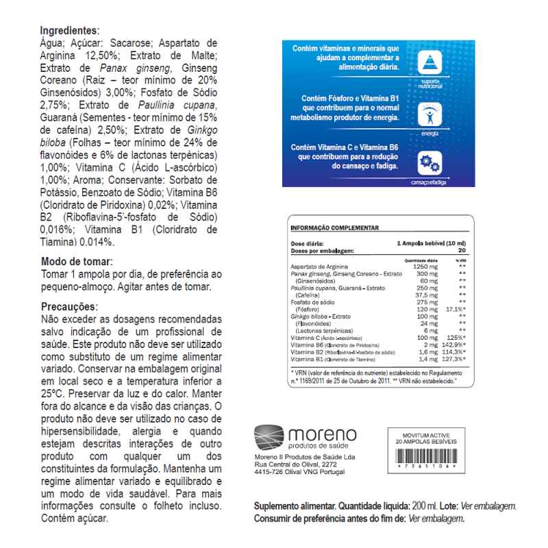 Bem-estarSuplementos e VitaminasMovitum Active Amp Beb 20