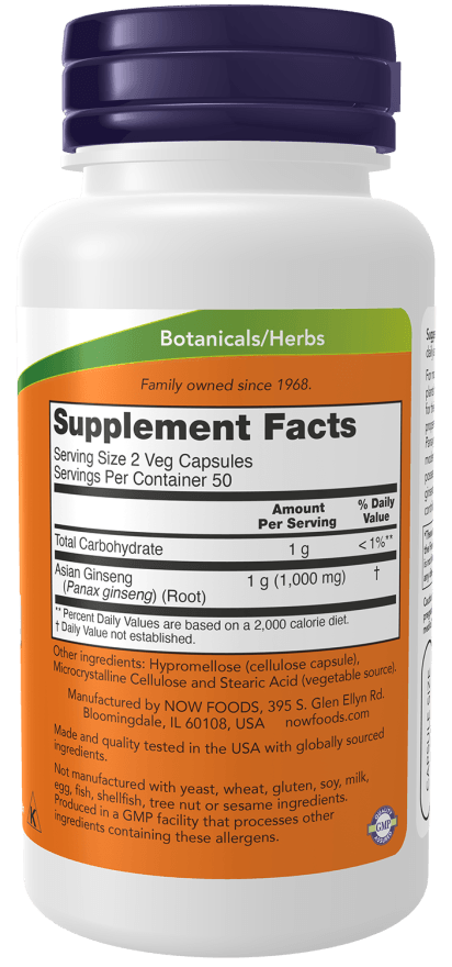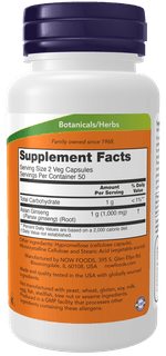 A raiz de Panax Ginseng utilizado pela NOW foi especialmente selecionada pela sua alta concentração em ginsenósidos, o mais ativo constituinte do Ginseng. O conteúdo típico deste Panax Ginseng é de um mínimo de 5%. O Ginseng tem revelado o seu poder a nível do aumento das resistências não específicas do organismo, dos níveis de energia e capacidade de trabalho e no combate aos estados de stress. Demonstrou possuir um forte efeito imunomodulador como agente fortificante do Sistema Imunitário. É um excelente adaptogéneo e por isso ajuda o organismo a adaptar-se, quer ao stress ambiental quer ao stress interno.