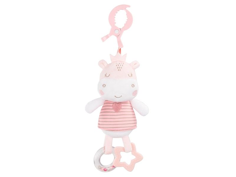 Peluche macio com mordedor colorido e detalhes divertidos de chocalho; Clipe plástico para facilitar a fixação; Fabricado com materiais seguros de alta qualidade; Aprovado pela norma EN 71; Adequado para crianças maiores de 0 meses; Tamanho: 36 cm.