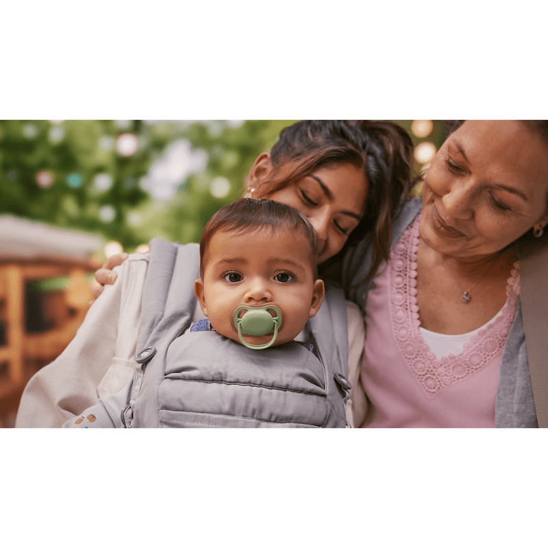 Calmante e respirável com orifícios amplos. 9 em cada 10 pais concordam: as chupetas Philips Avent Ultra Air são confortáveis para o meu bebé.** O alívio calmante está sempre perto, independentemente de quem estiver a cuidar do bebé. Agora com materiais 80% à base de plantas.*
