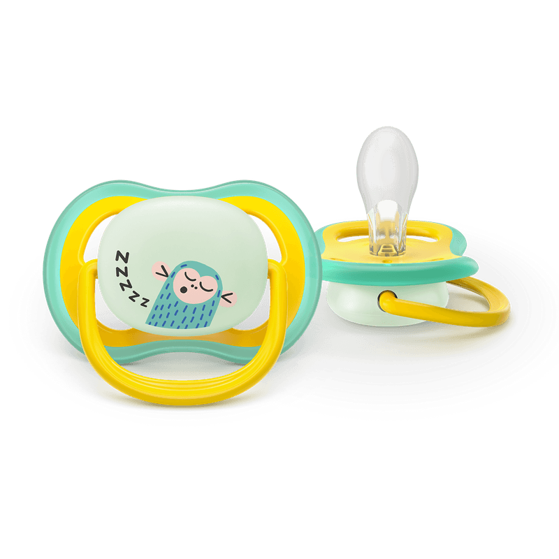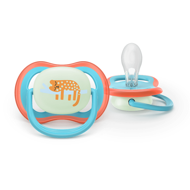 Acalme o seu bebé com uma chupeta que permite que a pele respire e que é fácil de encontrar à noite. A coleção Ultra Air possui aberturas maiores que ajudam a manter a pele seca e um botão que brilha no escuro para que a possa encontrar com as luzes apagadas.