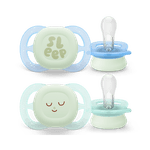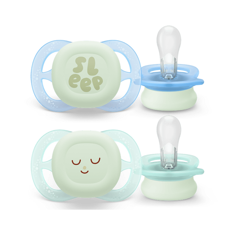 Tranquilidade desde o nascimento. As chupetas Philips Avent Ultra Start foram concebidas para se adaptarem à boca dos recém-nascidos e podem ser utilizadas em segurança até aos 6 meses. O conforto e o alívio estão sempre perto, independentemente de quem estiver a cuidar do bebé. Agora com 80% de material de origem vegetal*. Um Ajuste perfeito também à noite: escudo que brilha no escuro.