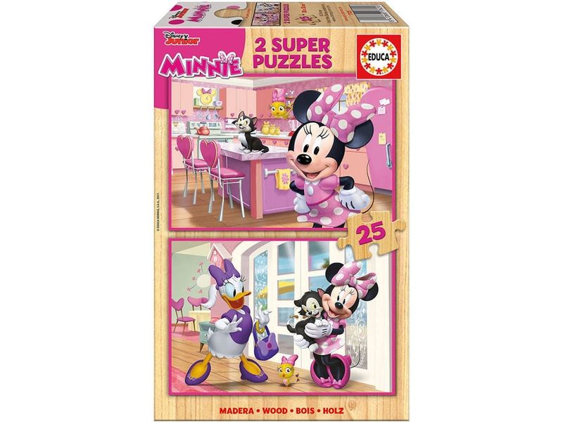 Puzzle EDUCA 2x Super Puzzle 25 Madeira Minnie Happy Helpers (Idade Mínima: 3 Anos - 50 Peças)