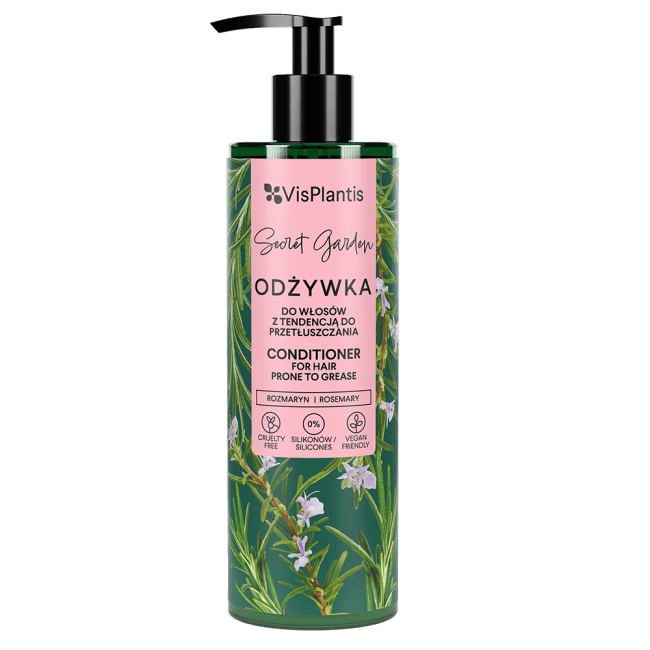 PARA CABELOS COM TENDÊNCIA À OLEOSOS ALECRIM O condicionador Vis Plantis com alecrim é a escolha perfeita para o seu cuidado diário. Após a aplicação, seu cabelo ficará mais forte, bem hidratado, sem ficar pesado, além de melhorar sua estrutura e aparência geral. O condicionador também proporciona suavidade e brilho, protegendo os fios das agressões causadas por processos de styling. Além de nutridos e regenerados, os cabelos ficarão mais fáceis de modelar. O alecrim presente no condicionador tem um efeito benéfico nos cabelos, estimula o crescimento e ajuda a combater a caspa. Além disso, refresca o couro cabeludo e os fios, e graças à regulação das glândulas sebáceas, reduz a tendência à oleosidade. O extrato de cardo-mariano é responsável por nutrir, hidratar e fortalecer as raízes capilares, reduzindo a queda e deixando os fios mais resistentes. Já o extrato de calendula limpa e dá leveza aos cabelos, além de ajudar a normalizar problemas de caspa.