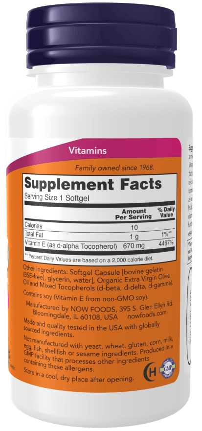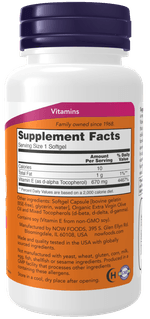 NOW® E-1000 é um suplemento de vitamina E, um nutriente com uma enorme capacidade antioxidante, que não só defende o organismo do stress oxidativo como também certos nutrientes como a vitamina A. A vitamina E é mencionada na proteção da visão, na manutenção da saúde das mucosas e da pele, na normal função imunitária e proteção cardiovascular, sendo até referida em algumas pesquisas na prevenção do enfarte agudo do miocárdio.