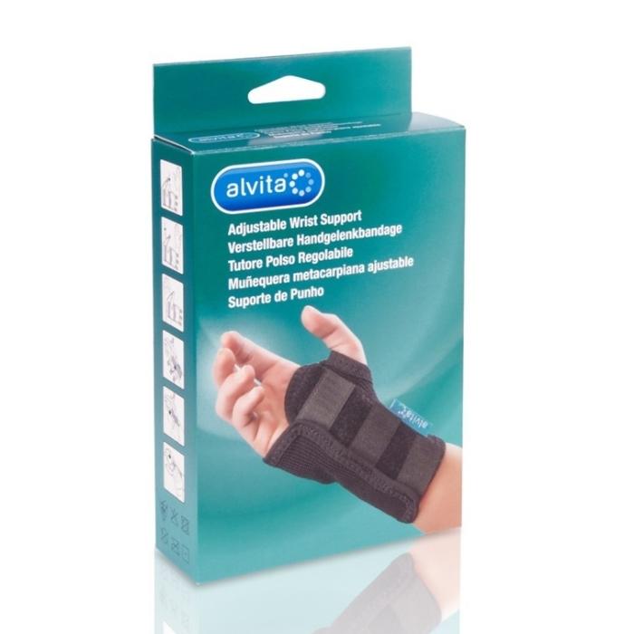 O Alvita Suporte de Pulso é um dispositivo ortopédico (tipo de tala ou suporte) concebido para estabilizar e imobilizar a articulação do pulso.