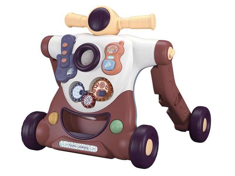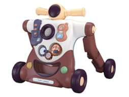 Adequado a partir dos 6 meses; Produto 4 em 1: andador, scooter, carrinho e centro de jogos; Mesa de jogo multifuncional com Luzes, música e sons; Estimula o reconhecimento das cores; Exercita e treina a força muscular; Desenvolve as capacidades motoras; Rodas com velocidade regulável; Evita a deformação das pernas em forma de O; Necessita de 2 pilhas AA para a mesa de jogo (pilhas não incluídas no conjunto). Dimensões andador: 48x43,5x51 cm; scooter 48x41x59.5 cm.