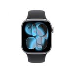 Apple Watch Series 11 . Tecnologia de apresentação: OLED, Resolução: 374 x 446 pixels, Ecrã táctil. Memória flash: 64 GB. Wi-Fi. GPS. Peso: 30,3 g. Humidade: À prova de água até: 50 m, Material de banda: Borracha, Cor da pulseira: Preto, Dimensões da pulseira: S/M. Sistema operativo instalado: watchOS 11