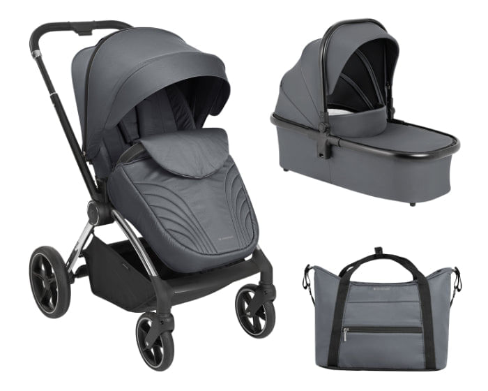 Acessórios incluídos: Almofada para os pés na unidade de assento e alcofa, capa de chuva, saco para a mãe com muda fraldas, adaptadores para cadeiras auto i-Prime e Maxi-Cosi. Combinável com as cadeiras auto i-SIZE i-Prime, i-Trail e Maxi-Cosi (não incluido no conjunto).