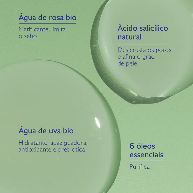A Loção Vinopure contém também água de rosa bio, conhecida por prevenir a produção excessiva de sebo e melhorar visivelmente a luminosidade da tez.