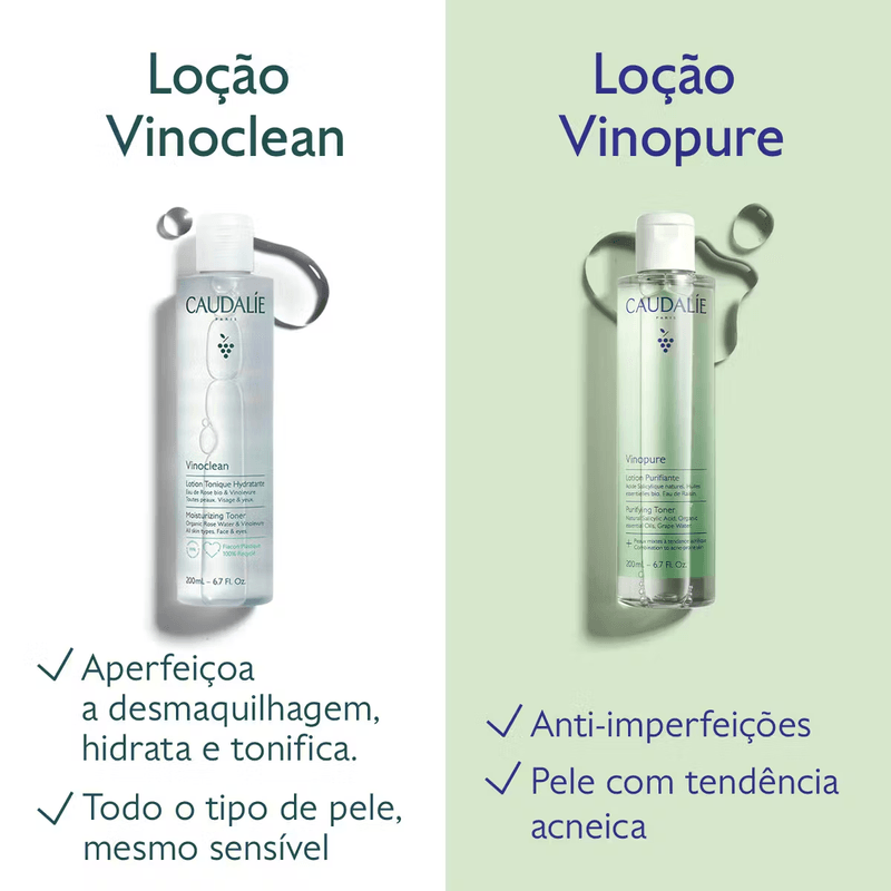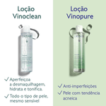 A Loção Vinopure encerra os poros, reduz as imperfeições e o brilho. A pele é purificada, matificada e limpa.