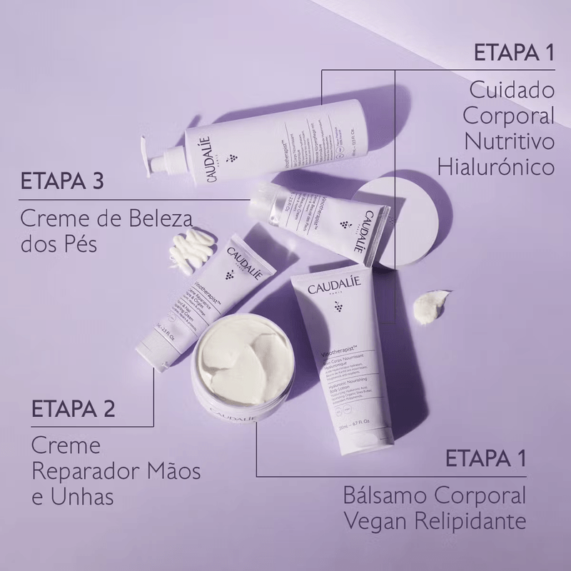 O Creme de Beleza dos Pés Vinotherapist™ nutre e repara os pés secos, mesmo com gretas. Reduz as sensações de repuxar e as rugosidades, para uma pele mais suave e macia.