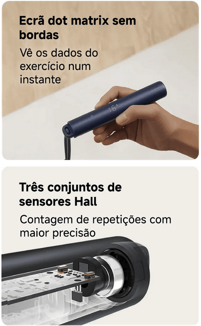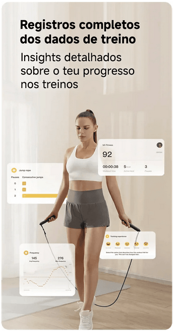 A Smart Jump Rope da Xiaomi é uma corda de saltar projetada para tornar o exercício físico mais eficiente, interativo e divertido. Com sensor inteligente integrado, permite acompanhar o número de saltos, calorias queimadas e tempo de treino, ajudando a monitorizar o desempenho e a evolução ao longo do tempo.