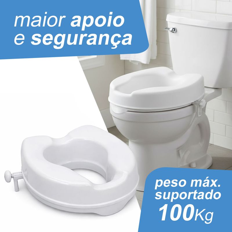 Elevador de sanita com fixadores: aumenta a altura do assento para mais conforto e segurança, ideal para pessoas com mobilidade reduzida.