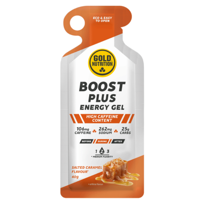 Boost Plus Energy Gel da Goldnutrition é um gel com alto teor de cafeína, sódio e hidratos de carbono de libertação rápida, pensado para as alturas em que é necessária uma injeção de energia.