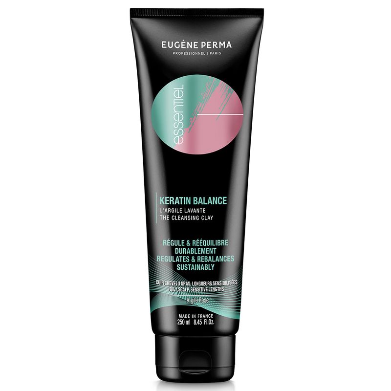 Argila de limpeza purificante para raízes oleosas e comprimentos sensibilizados. A Argila de Limpeza Essencial KERATIN BALANCE elimina as impurezas e o excesso de sebo, deixando uma agradável sensação de frescura. A sua fórmula, composta por argila rosa e um aminoácido seborregulador, purifica o couro cabeludo e permite espaçar as lavagens. O couro cabeludo fica hidratado e o cabelo recupera volume e suavidade. Pode ser utilizada alternadamente com o champô e é adequada para todos os tipos de couro cabeludo, mesmo os sensíveis.