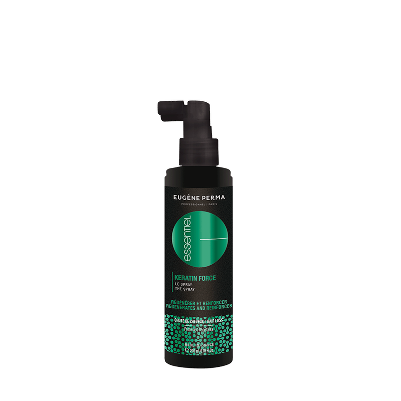 O Spray Essencial Keratin Force é um tratamento sem enxaguamento para regenerar e fortalecer o cabelo em situações de queda. Com as suas propriedades estimulantes e regeneradoras, melhora a qualidade do cabelo. O Spray Keratin Force para queda de cabelo contém proteínas vegetais extraídas de ervilhas, com propriedades estimulantes e regeneradoras desde a raiz, combinadas com Queratina.