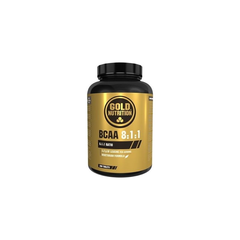 BCAA 8:1:1 200 comprimidos - Gold Nutrition BCAA 8:1:1 de Gold Nutrition são produtos que ajudam a melhorar o desempenho durante momentos de esforço físico. Durante o treino, o corpo entra em estado catabólico e se o organismo não tiver os nutrientes necessários para se abastecer, o resultado é a perda de massa muscular. É neste momento que o músculo necessita de uma quantidade adequada de nutrientes, essencialmente de aminoácidos.p>Dado a importância da Leucina para síntese muscular, esta fórmula destaca-se por uma maior proporção de leucina (8) em relação à valina (1) e isoleucina (1). BCAA 8:1:1, aminoácidos de cadeia ramificada (leucina, valina e isoleucina), ajuda-te a promover a síntese proteica muscular e, consequentemente o crescimento muscular após o treino.Maiores concentrações plasmáticas de BCAA’s e de leucina, originam um aumento do output de força e um maior tempo de performance adequada aos treinos de força e de endurance, intensos e regulares.Pode ajudar no(a):– Aumento da performance física. – Estimulação do crescimento de massa muscular. – Redução da fadiga e do cansaço físico. – Aceleração da recuperação muscular.