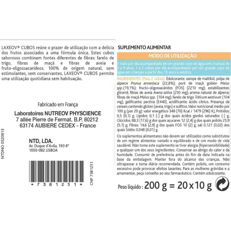 Bem-estarSuplementos e VitaminasLaxeov Cubos Maçã/alperce 20