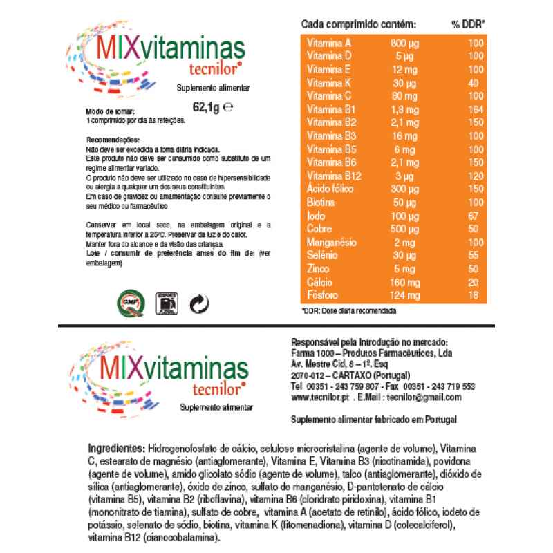 Mixvitaminas Tecnilor Comp 60 - Marketplace Médis - Produtos de saúde e bem-estar
