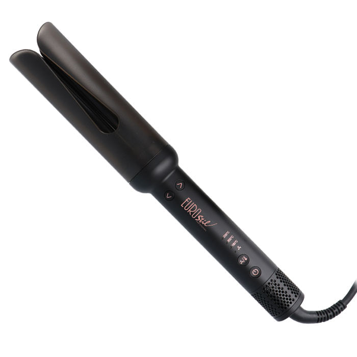O modelador de caracóis automático Eurostil Twister permite criar os caracóis perfeitos em apenas 3 segundos sem danificar o cabelo, graças à sua tecnologia de ar frio. A sua utilização é muito simples e as suas placas cerâmicas flutuantes e o corpo cerâmico garantem um aquecimento uniforme e um acabamento profissional. Potência 53 W / Temperatura 180 ºC - 200 ºC - 230 ºC / Resistência PTC / Peso 315 g / Cabo de Alim. 2,7 m de cabo com rotação 360º / Tecnologia de ar frio / Placas flutuantes de cerâmica (27 mm) / Cilindro de cerâmica de (34 mm) / Indicador LED / Encerramento automático: 30 min