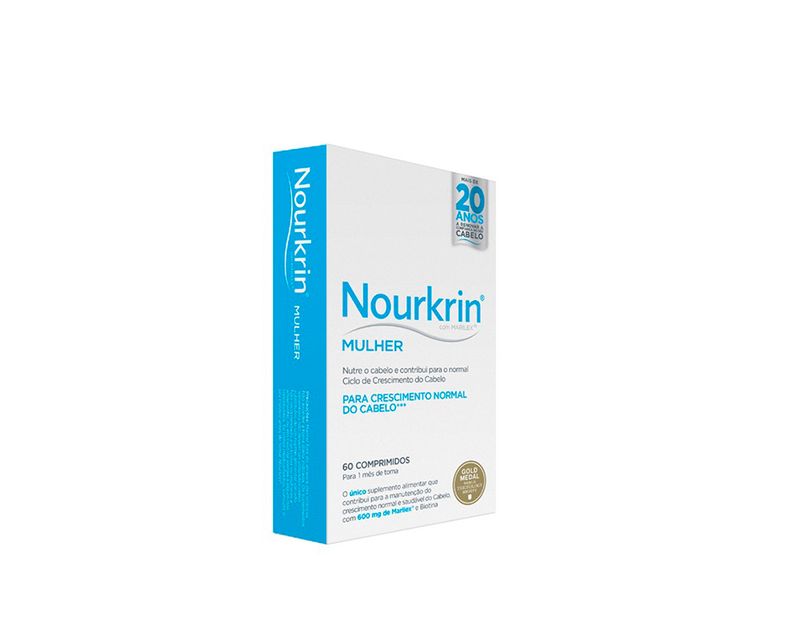 Nourkrin Mulher é um suplemento alimentar para a queda de cabelo feminina. Um Ciclo de Crescimento do Cabelo desregulado é o principal fator que contribui para a queda e um recrescimento mais fraco. Nourkrin contém um ingrediente exclusivo e patenteado – MARILEX – que ajuda a normalizar esse Ciclo, estabilizando a queda de cabelo. Nourkrin é o ÚNICO suplemento alimentar para Crescimento de Cabelo que foi premiado com a Medalha de Ouro pela Sociedade Mundial de Tricologia, estando cientificamente comprovado e fundamentado por mais de 30 anos de investigação.