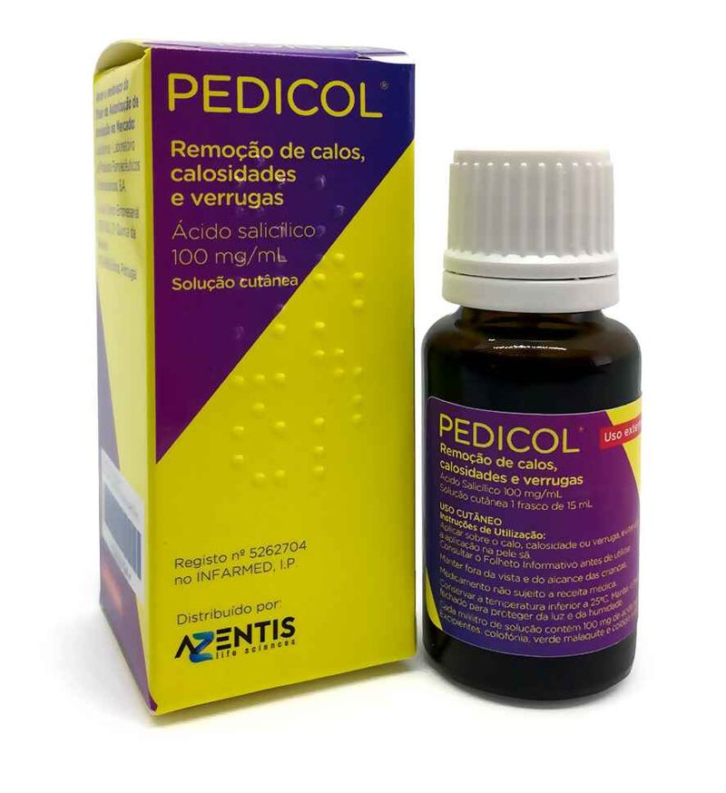 Medicamento indicado para a remoção de calos, calosidades e verrugas.