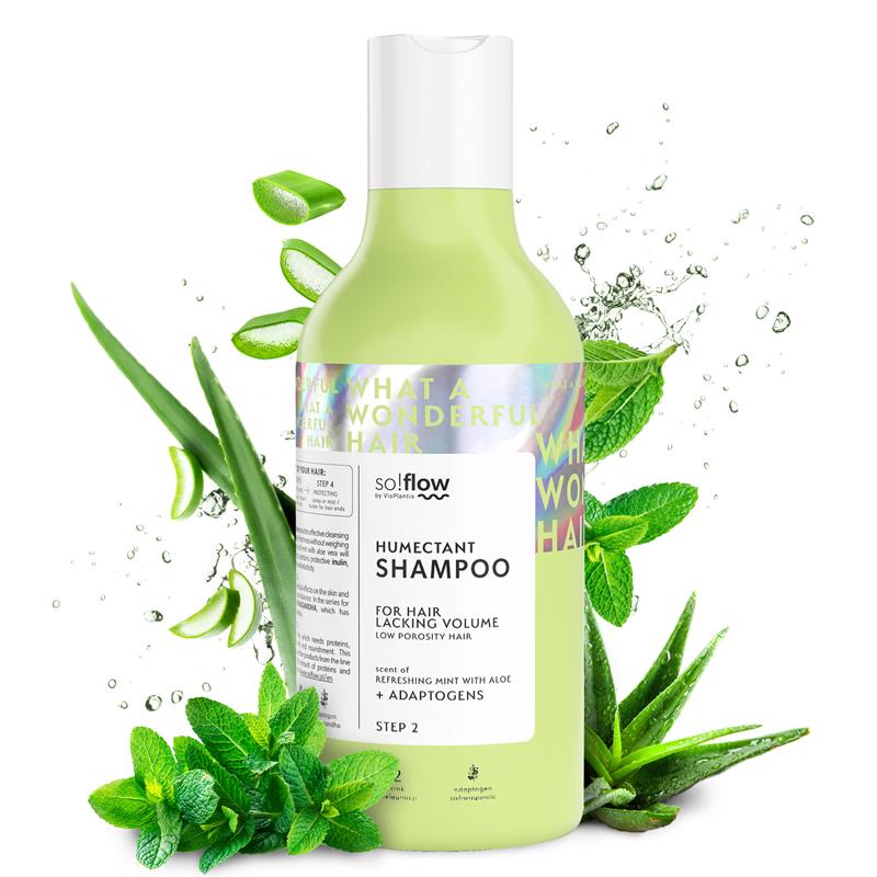 Champô humectante para cabelos sem volume e de baixa porosidade Os cabelos sem volume e de baixa porosidade, são muitas vezes suaves, brilhantes e soltos, mas ficam pesados muito facilmente. Além disso, têm tendência a ficar oleosos rapidamente e tornam-se difíceis de pentear e dar volume. O champô humectante com o complexo hidratante NMF permite uma limpeza eficaz dos cabelos e do couro cabeludo. Dá ao cabelo a frescura necessária sem o deixar pesado. O produto faz uma boa espuma e o aroma invulgar de menta com aloé vera estimula os sentidos durante a utilização. Contém uma inulina protetora, que disfarça os danos no cabelo, dando-lhe suavidade e elasticidade. Aroma a Menta e Aloé Vera 🍃 ADAPTOGÉNIOS São substâncias vegetais naturais famosas pelos seus efeitos benéficos na pele e no cabelo e que também ajudam a restaurar o equilíbrio natural do corpo. Na gama para cabelos de baixa porosidade, incluímos o ASHWAGANDHA, que tem propriedades antioxidantes, hidratantes e refrescantes.