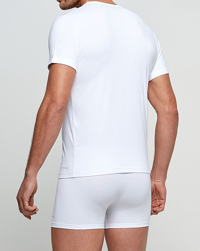 T-shirt gola em V da linha Innovation. Innovation é realizada com fibras vegetais naturais, o algodão e a viscose, associados à propriedade termoreguladora do Outlast® Adaptive Comfort®.Tecnologia desenvolvida para a NASA como solução para minimizar o efeito das oscilações constantes de temperatura no Espaço.Innovation armazena o calor corporal excessivo para o voltar a distribuir em caso de necessidade, proporcionando condições de temperatura e humidade ideais e constantes junto à pele, evitando o desconforto das mudanças bruscas de temperatura.Produzido em Portugal.