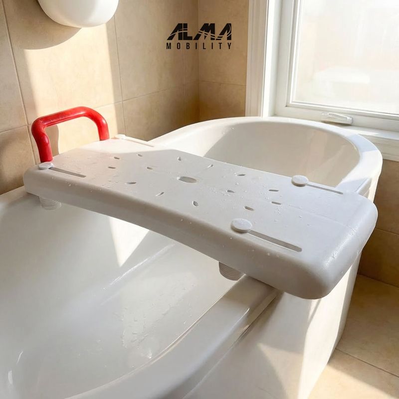 Tábua de banheira segura e antiderrapante para banheira, ideal para pessoas com mobilidade reduzida. Mais conforto, segurança e autonomia durante a higiene.
